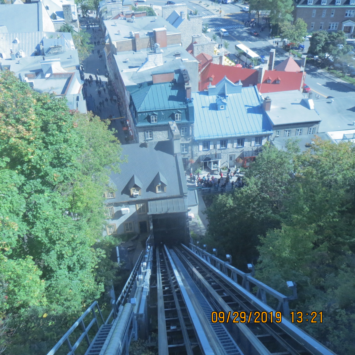 The ship arrived at Quebec City (QC) in the early morning and by 10am we were on our tour bus under sunny skies for our first shore excursion. Our guide taught us some history and civics lessons: Quebec is Canada's largest province, tourism is QC's main industry and maple syrup is a large export product. We visited The Plains of Abraham which is a battlefield park. Named after the land's original owner, Abraham Martin (1589-1664), the field is the scene of a battle in 1759 during which the British defeated a French army and soon took over all of Canada. We also had good photo opportunities there looking over the St Lawrence River which actually drains all of the Great Lakes into the Atlantic Ocean. After a quick look at the Chateau Frontenac and a ride down the hill via funicular we were soon back on the ship and ready for departure and dinner.
