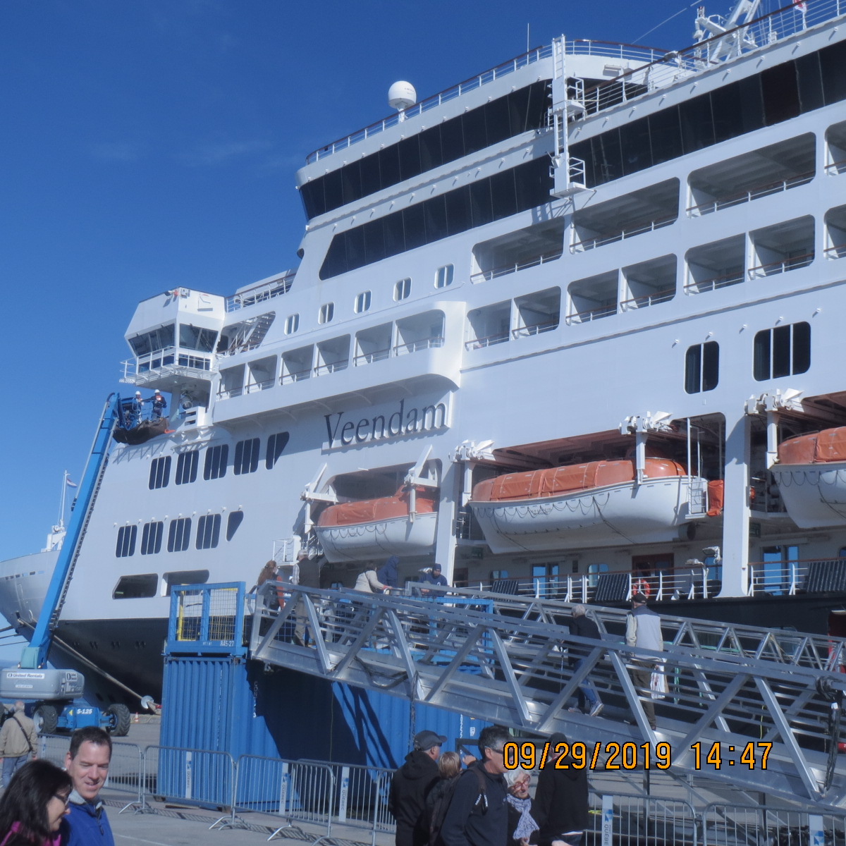 Today we boarded the ship Veendam of Holland America Line for our 7 day cruise starting in Montreal, up the St Lawrence River to Quebec City and then to Charlottetown, Prince Edward Island via the Gulf of St Lawrence. Other stops included Sydney and Halifax, Nova Scotia, Bar Harbor, Maine and ending at Boston, Mass.