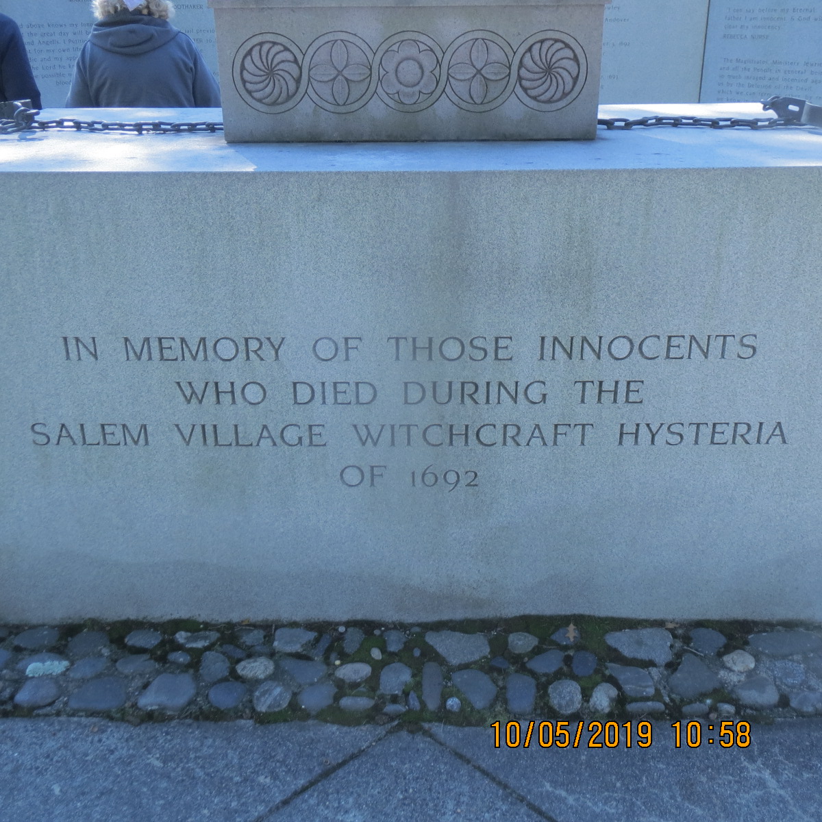 Our cruise concluded upon our early disembarkation from the Veendam in Boston. After saying so long to our traveling companions, Jeanne and I rented a car and spent the day visiting with Buck and Sarah who live in Danvers, MASS just north of Boston. Danvers is the site of the old Salem Village best know for the witch hunts of 1692. Since October is Halloween month the city of Salem cashes in on witch frenzy by having weekly street fairs and opportunities to dress up in silly costumes. We went to the street fair along with the entire population of Massachusetts on this lovely Fall day. Buck and Sarah live in a house originally built if around 1680s and was the actual home of a notorious young girl, Ann Putnam, Jr. Ann and her young friends apparently amused themselves by accusing some neighbors of being in leagues with the devil. The resulting witch trials resulting in the hanging of 19 women, crushing with rocks of one man and 5 deaths while in prison all during a 3-4 month period in 1692.